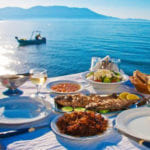 I piatti sono spesso preceduti da vari Mezedes (antipasti) a base di melanzane, olive o formaggi, e accompagnati da Pita, Tzatziki, Feta, riso e buon olio d’oliva. il tutto bagnato da Ouzo. Vi consiglio: assaggiate le varianti del Saganaki formaggio fritto; non potete perdervi i calamari fritti e le Greek salad, la Moussaka solo se ben cucinata e i Dolmades (polpettine di carne tritata o di riso avvolte nelle foglie di verza o di vite) .